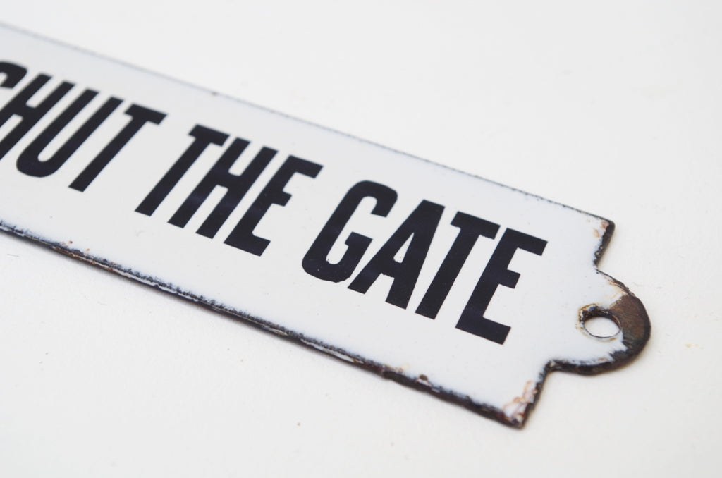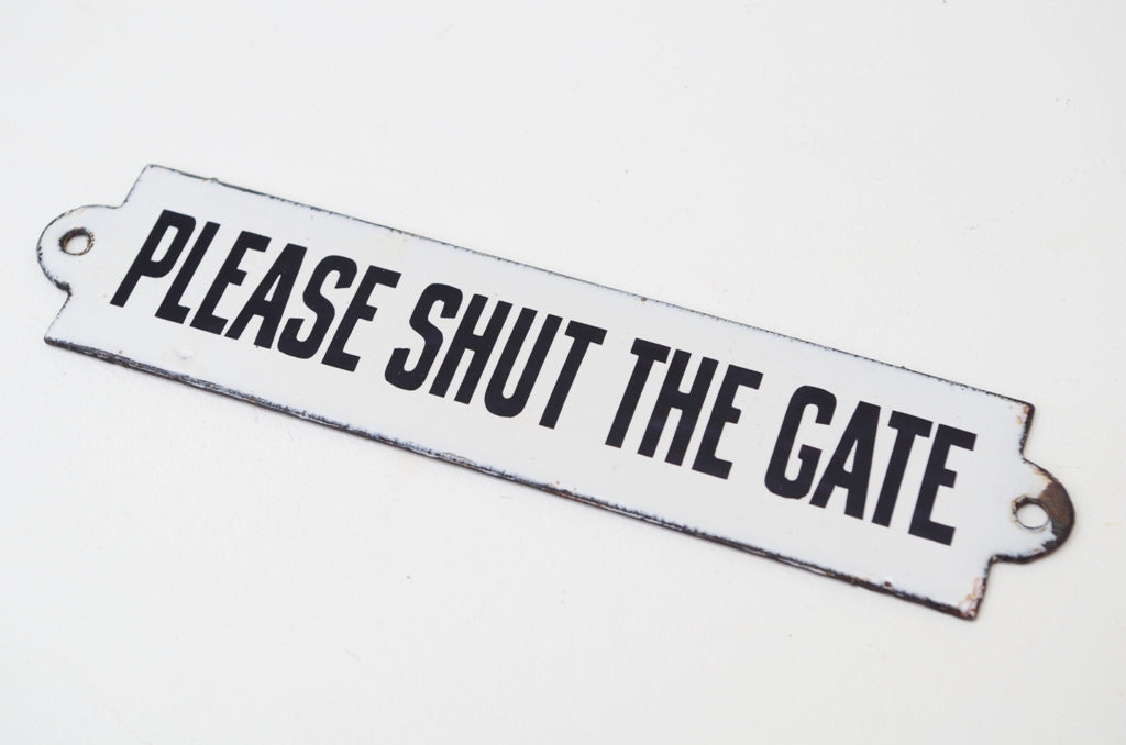 An original vintage enamel garden gate sign. In very good condition for age, please see images. Includes free postage & packaging.