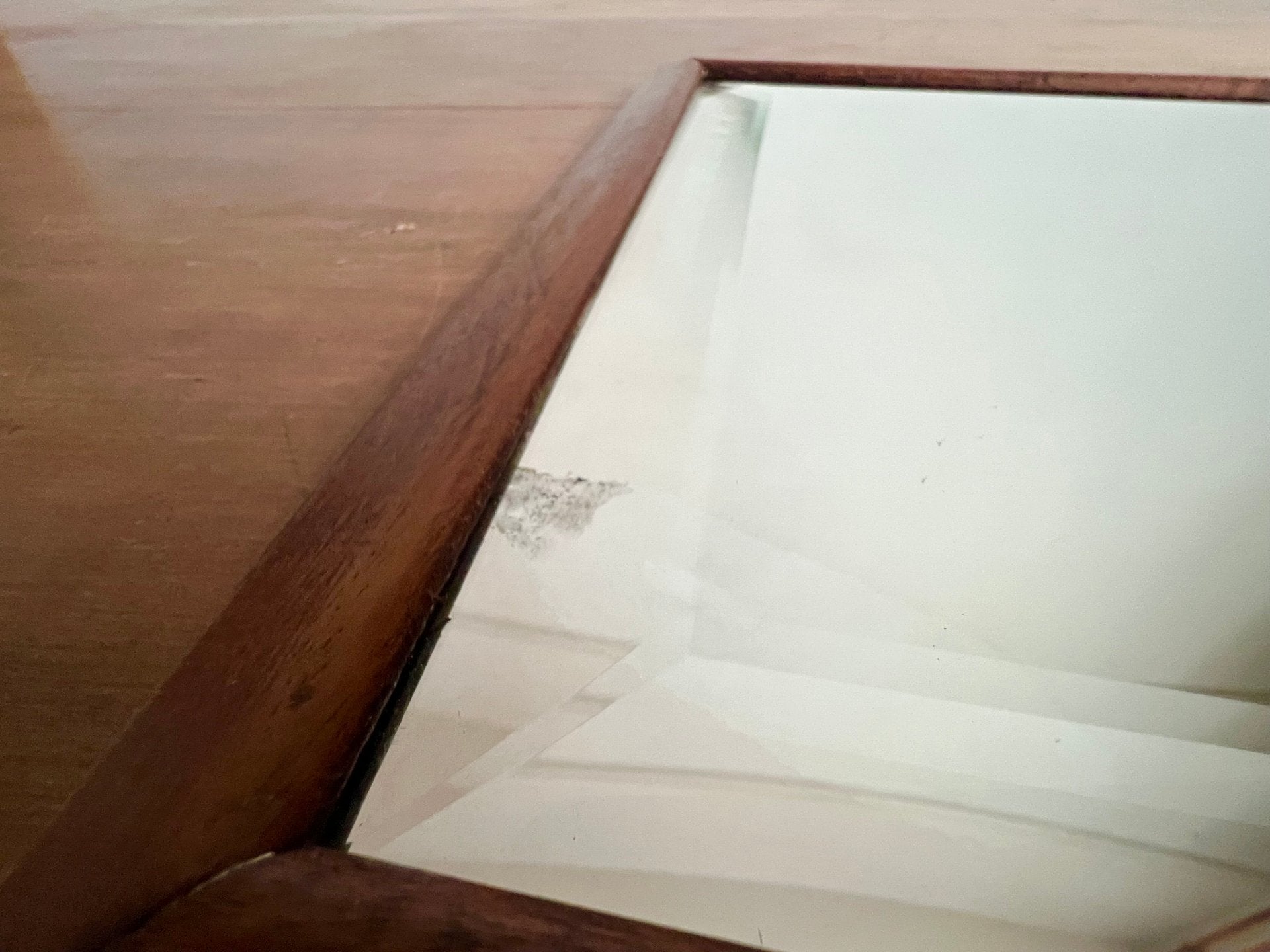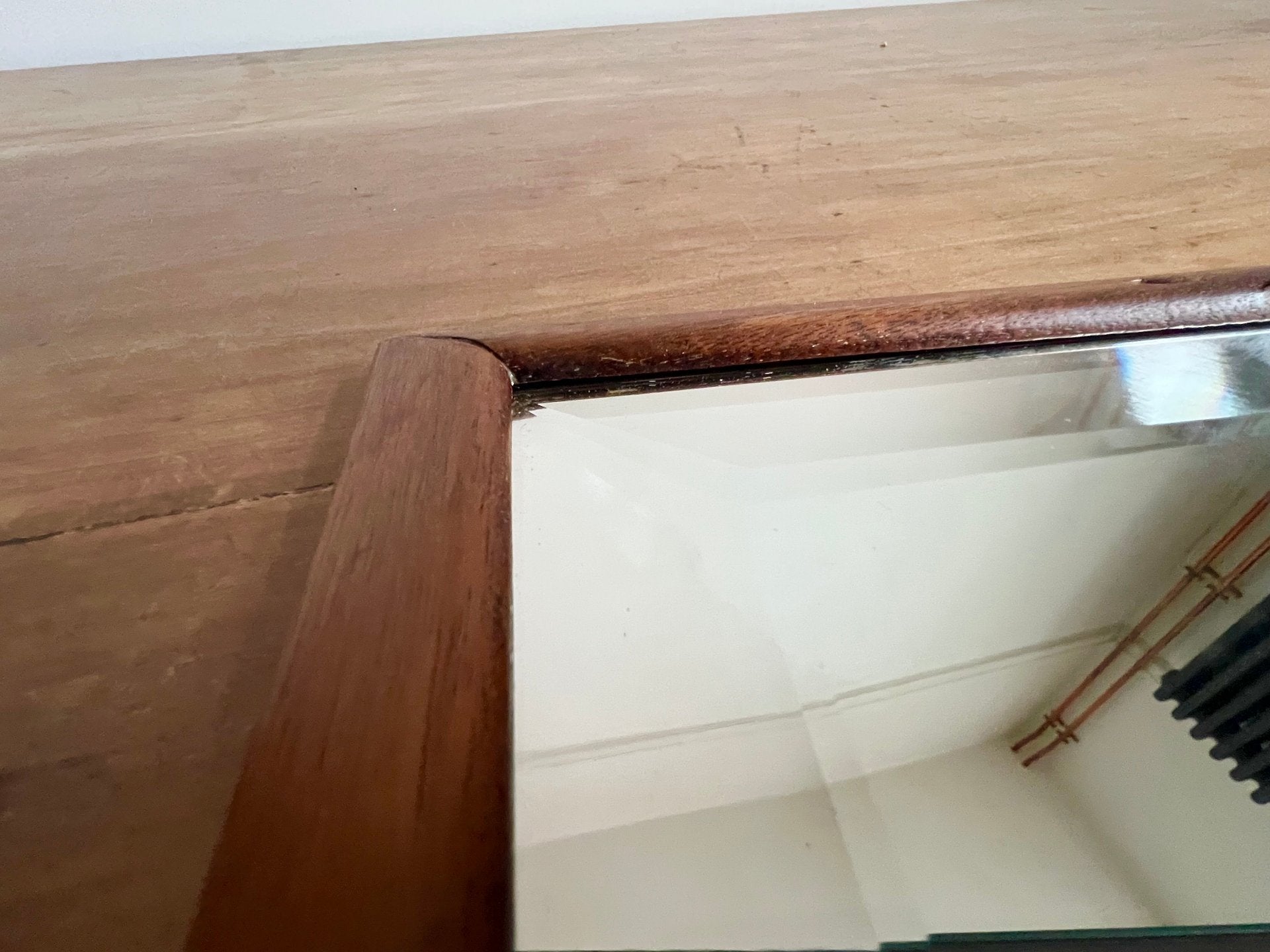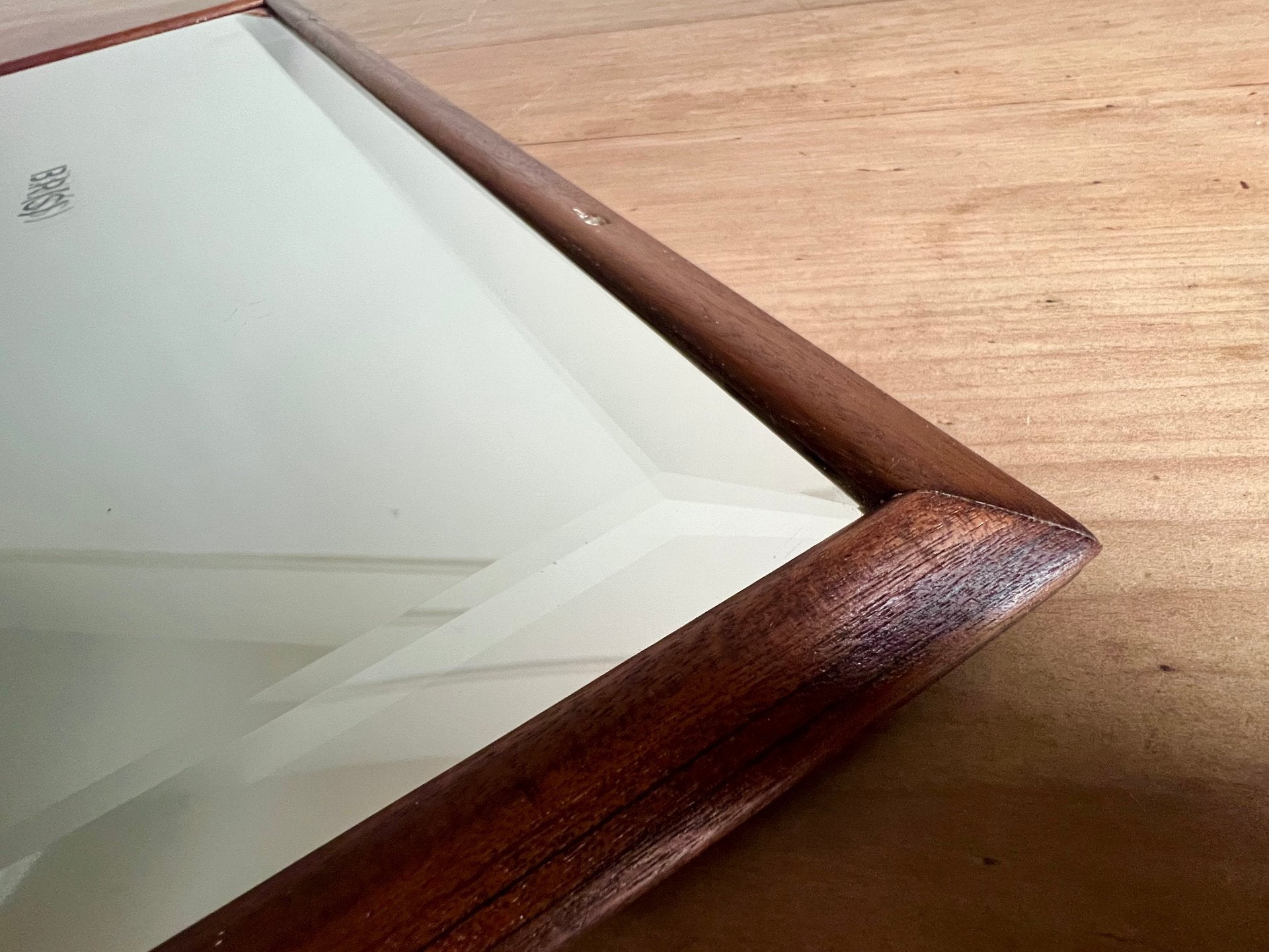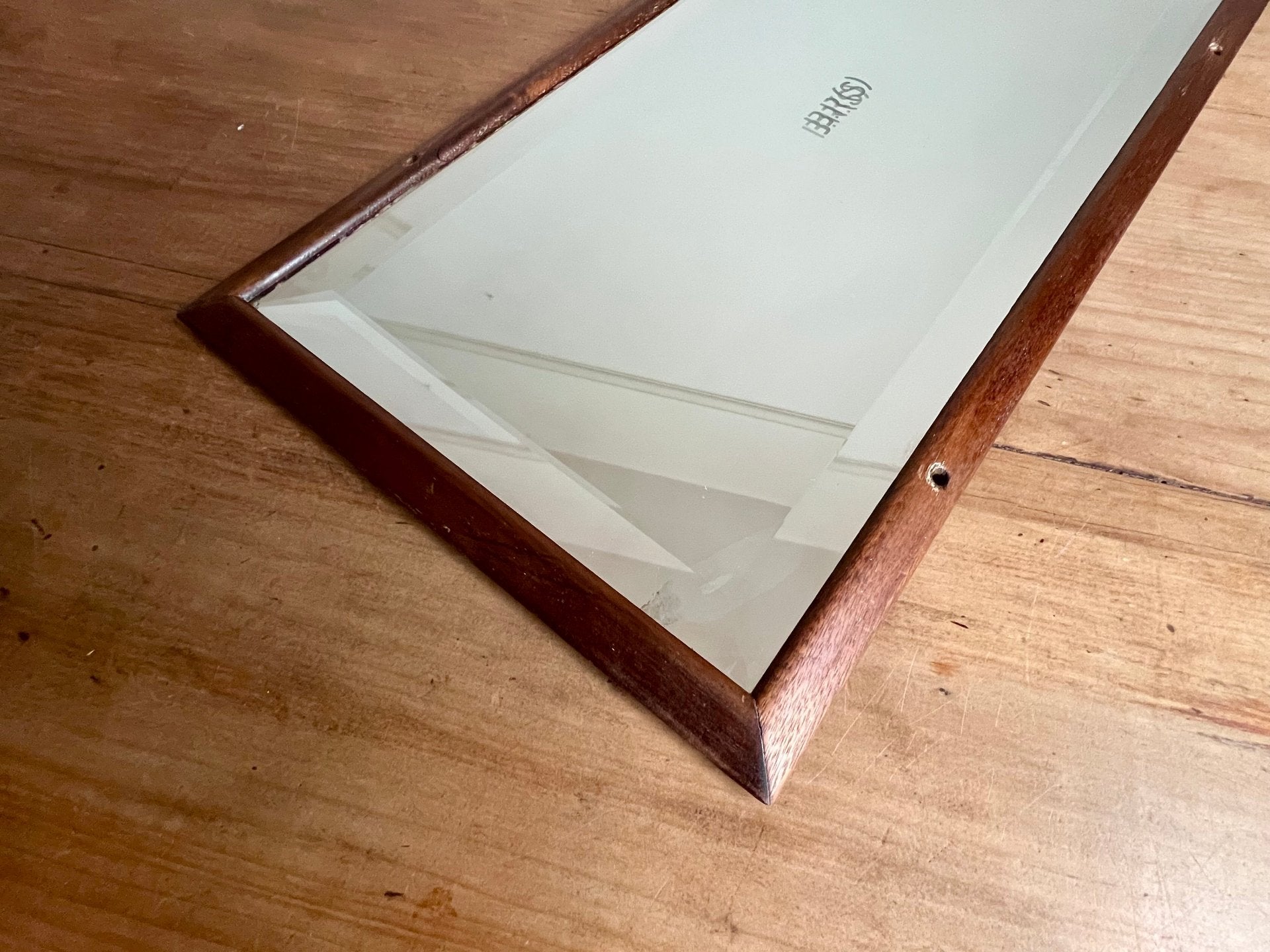 A great bevelled mirror in mahogany frame. This BR carriage mirror would have been part of the Southern branch of British Rail. With it's original Pilkington Silvered Glass, it's nice to have a bevelled example.