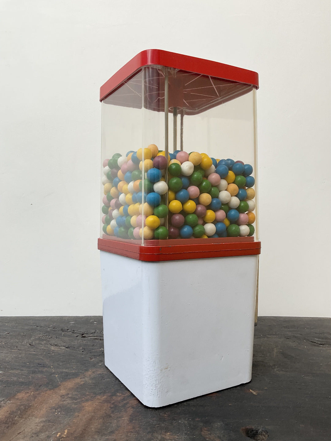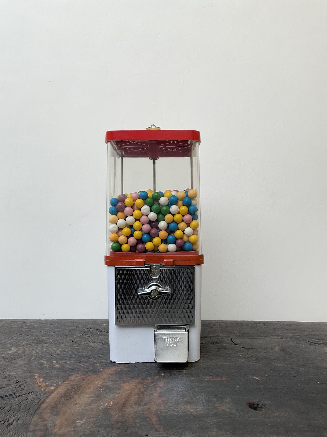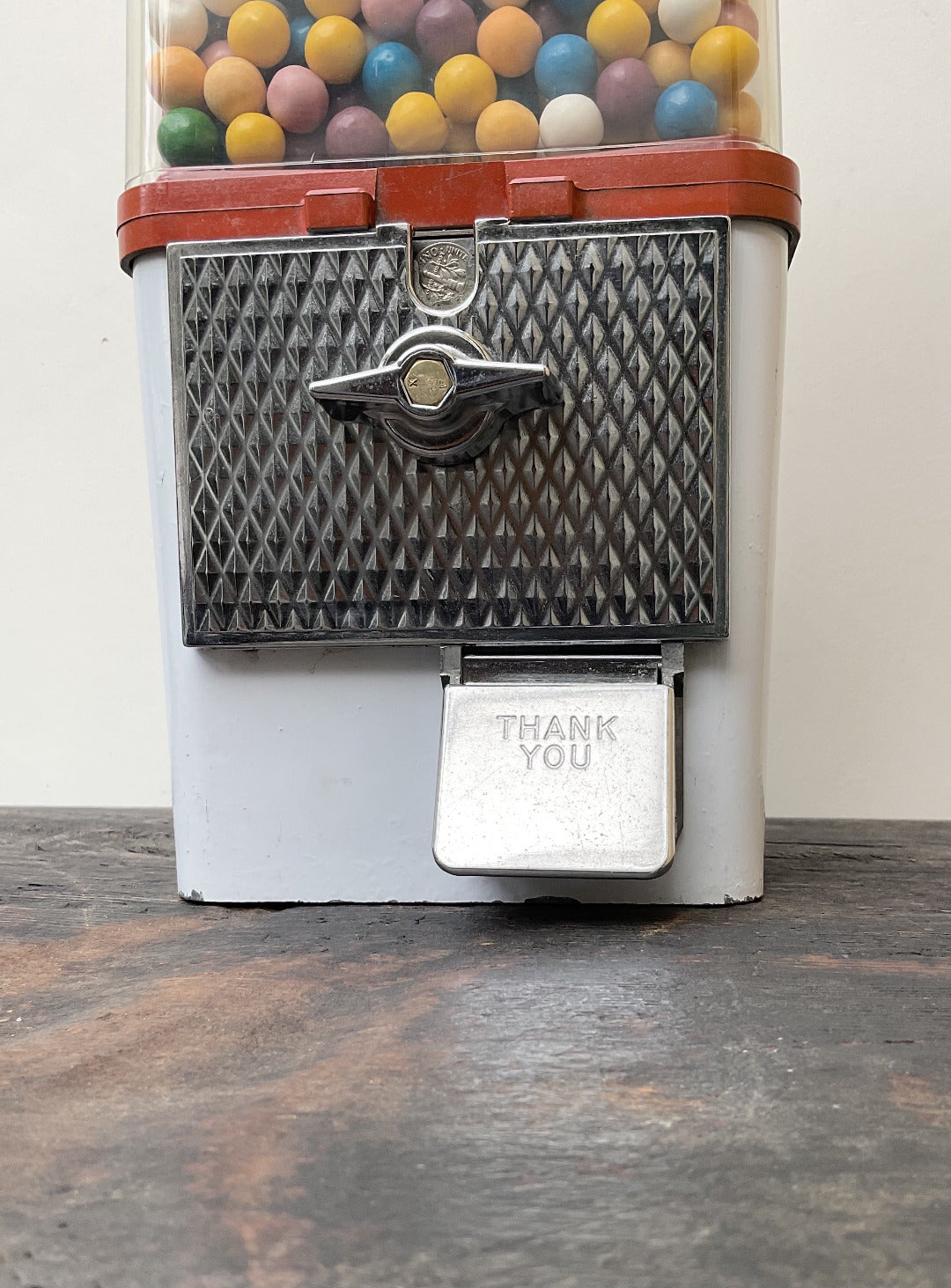 An original 1960's American Komet Gumball dispensing machine. It has a new barrel lock and key and takes U.S. dimes, which we will include (see pic) and in good working order.