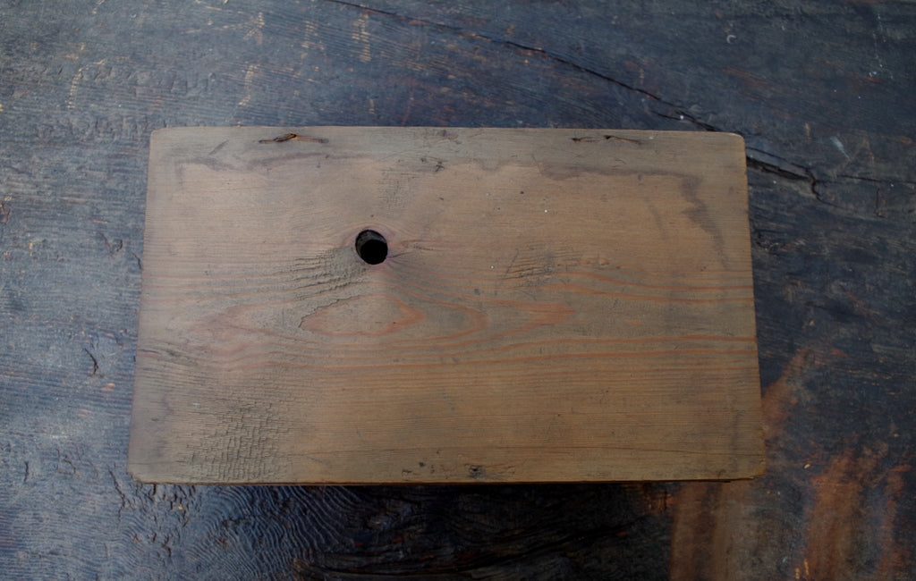 Showing signs of age related wear and marking. As a shipping box, it has been loosely fashioned into a lidded box using the original nails, see images for condition.