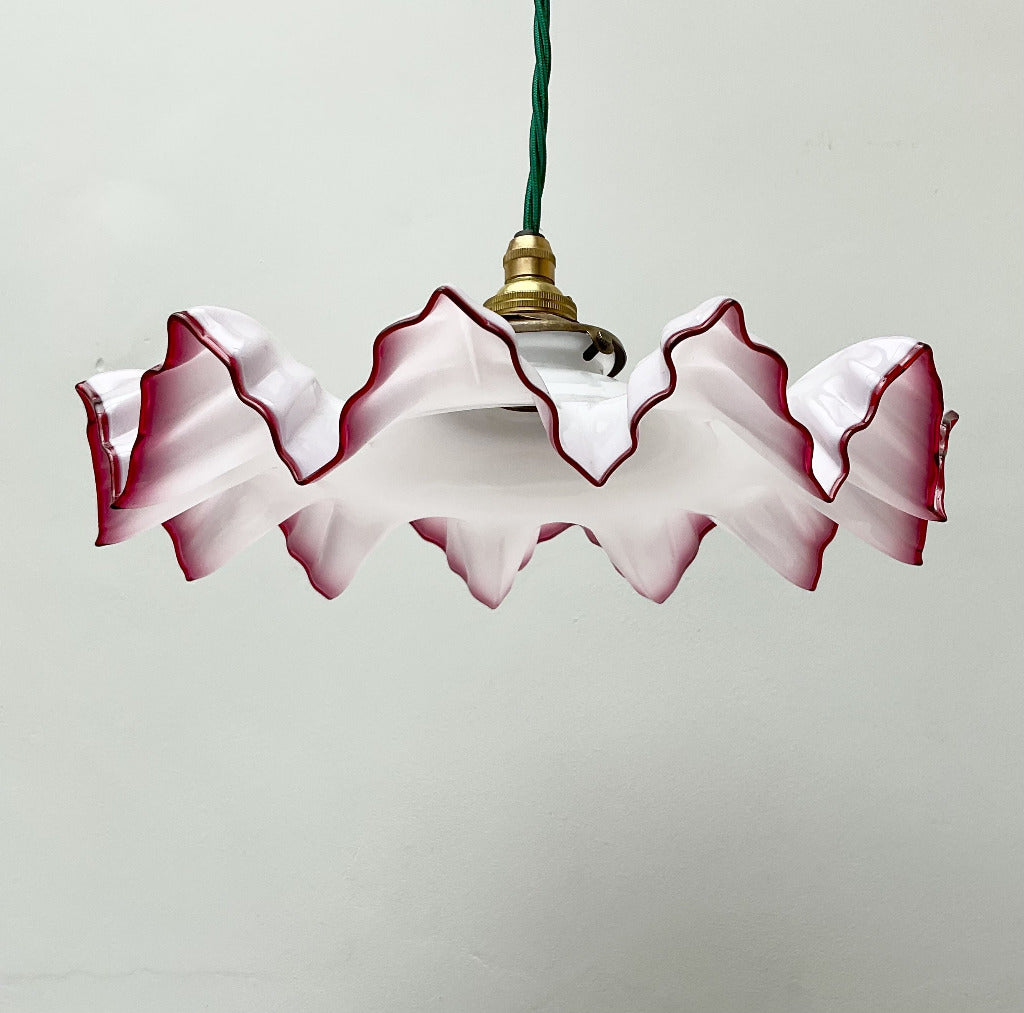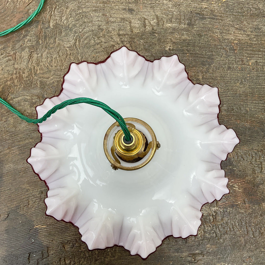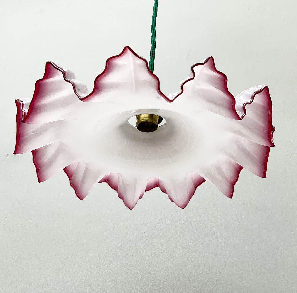 A beautiful vintage French glass handkerchief shade. The shade comes with the gallery and bulb holder and 1.22cm of green flex as shown in the images .