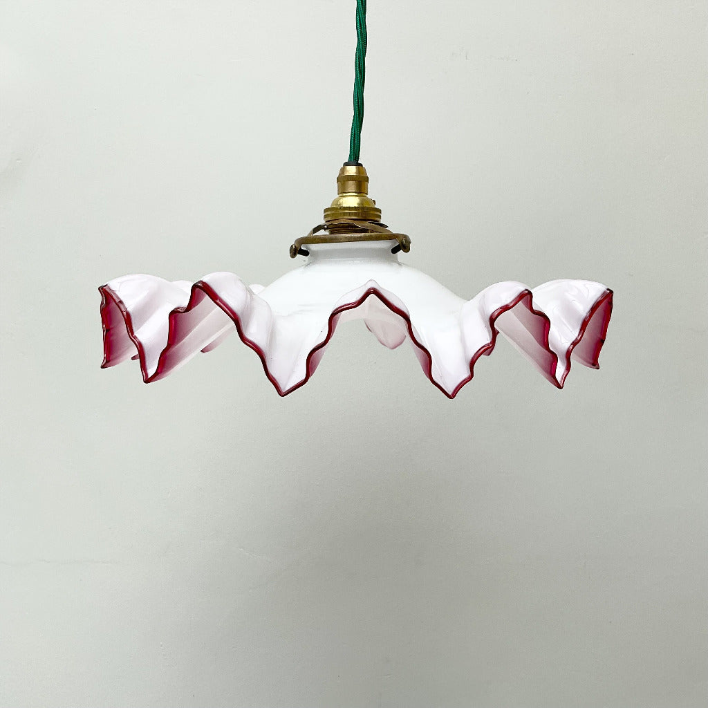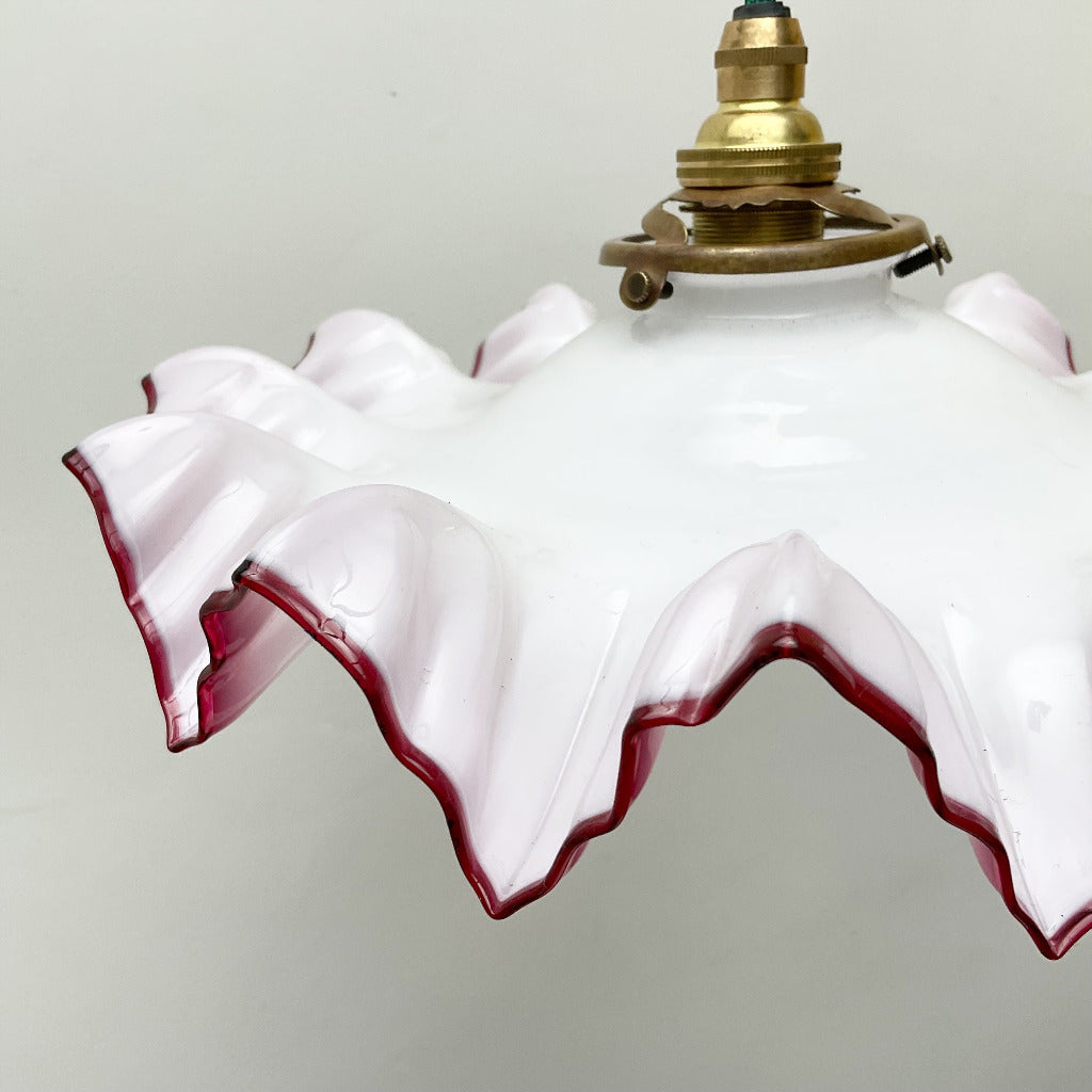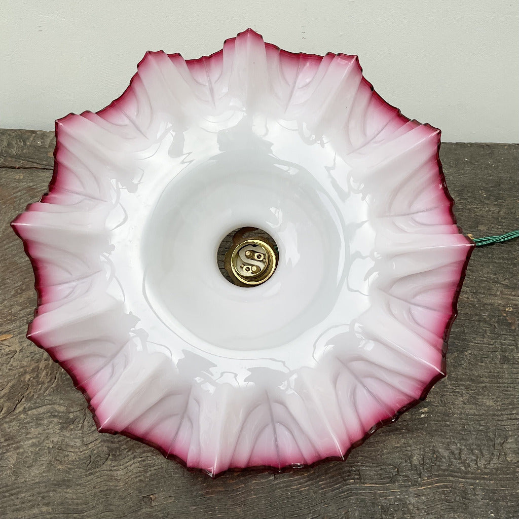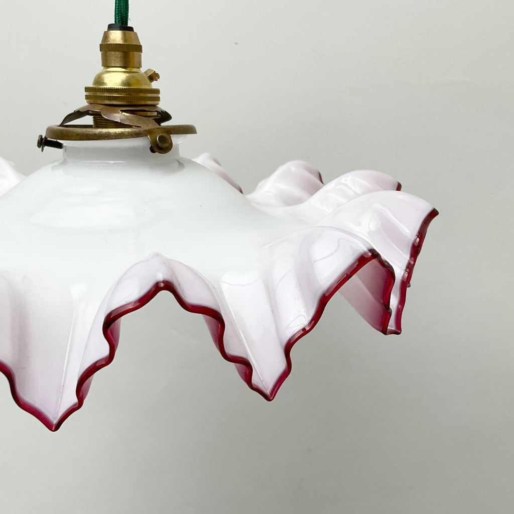A beautiful vintage French glass handkerchief shade. The shade comes with the gallery and bulb holder and 1.22cm of green flex as shown in the images .