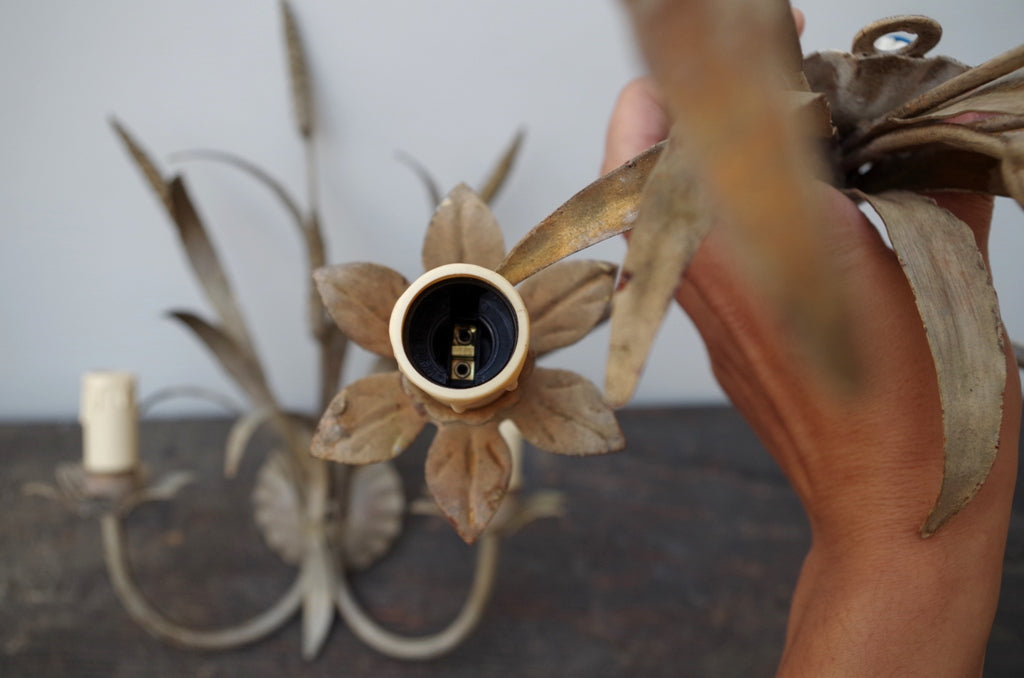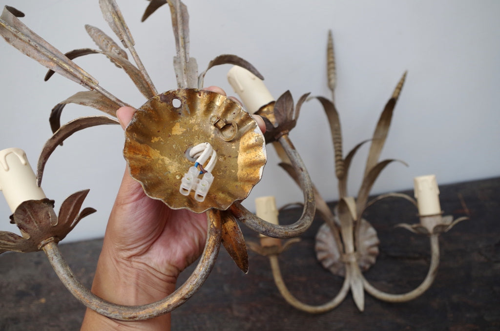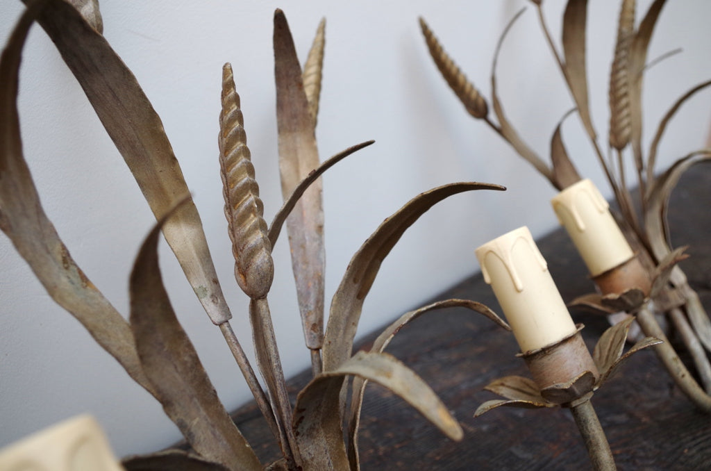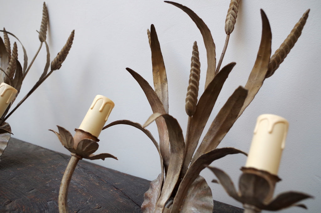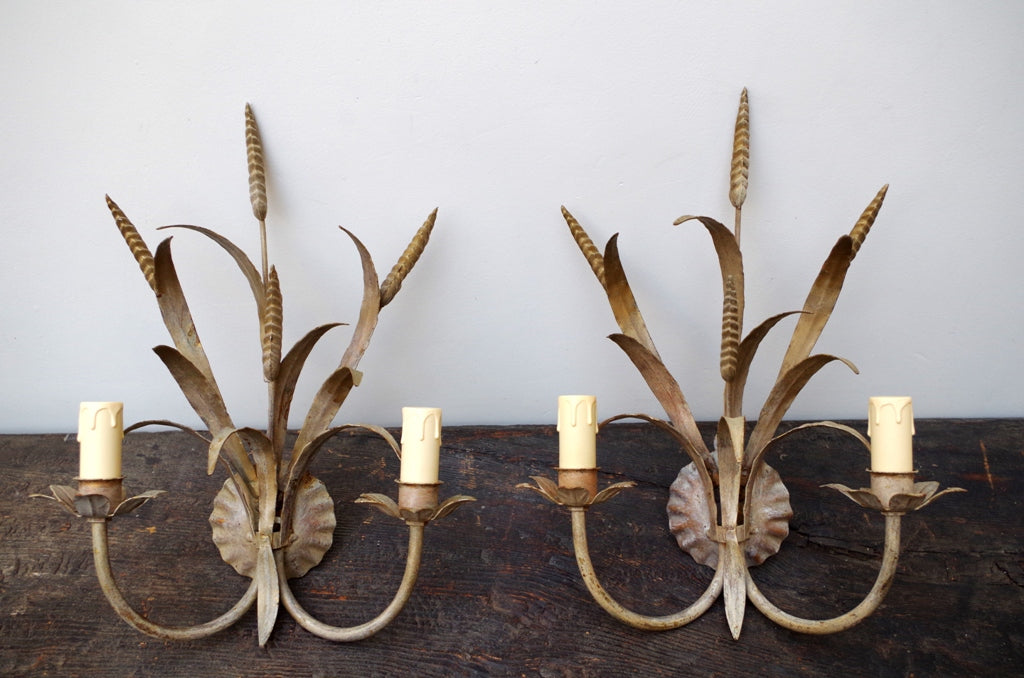 A lovely decorative pair of mid-century wheatsheaf sconces fitted with new candle bulb holders. Postage and packaging is included with the price. Lighting should be installed by a qualified electrician. Please inspect images for condition.
