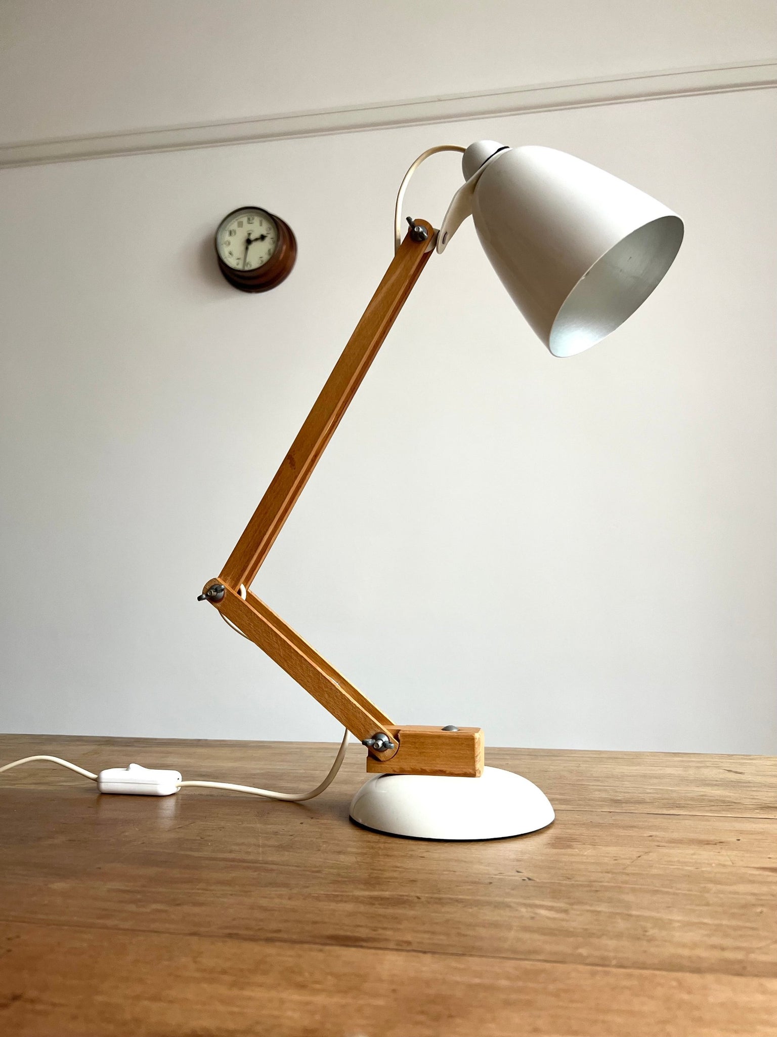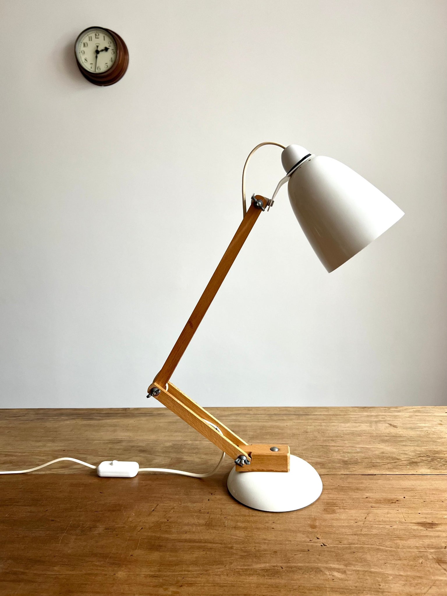 An original mid-century Terence Conran Mac Lamp with wooden arms. Original paintwork. Restored, rewired and PAT tested.