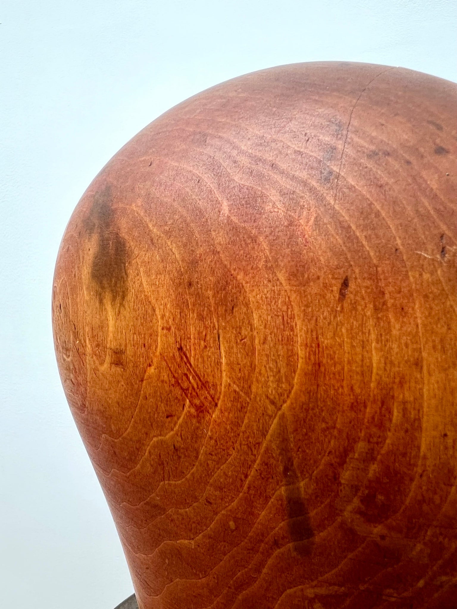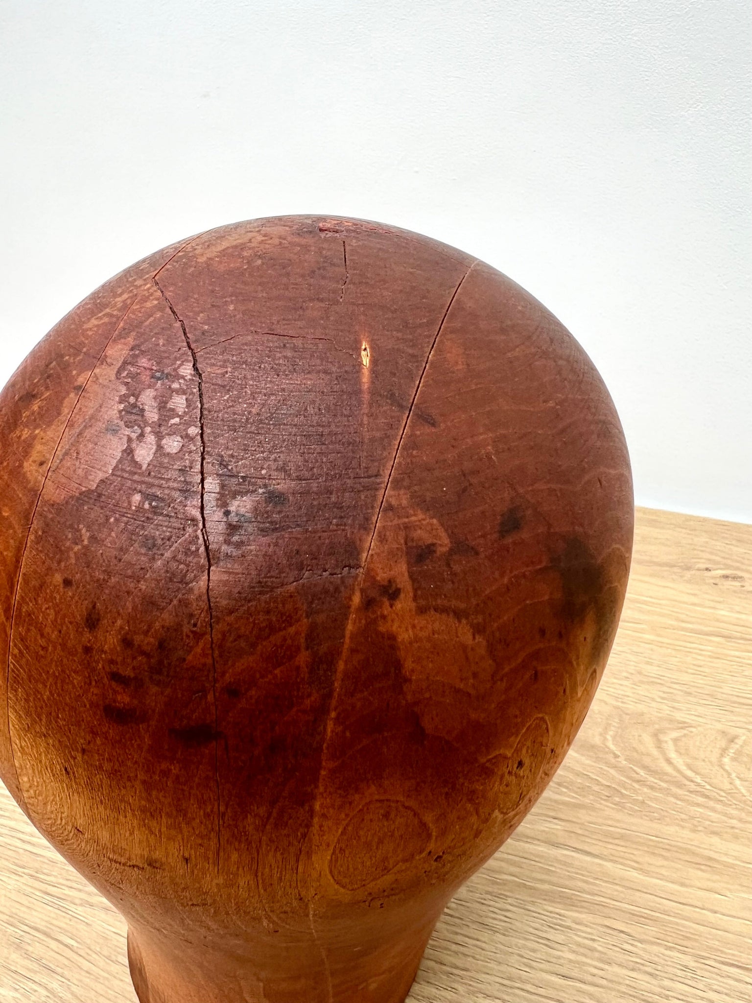 This dolly head hat block was used for a variety of millinery uses, made up of four wooden sections, it's a nice object with many useful purposes. Stamped 54, showing age related wear, please see images for condition.