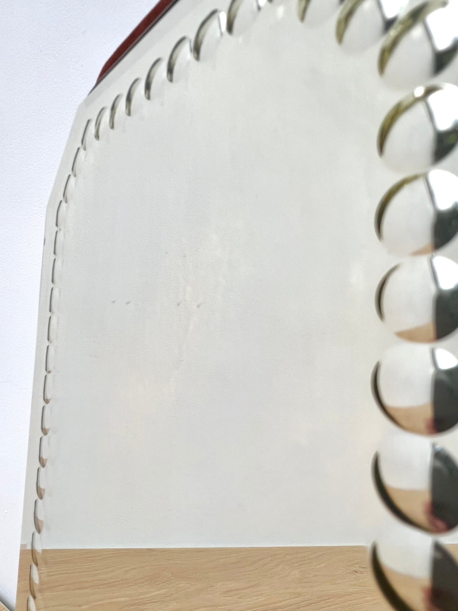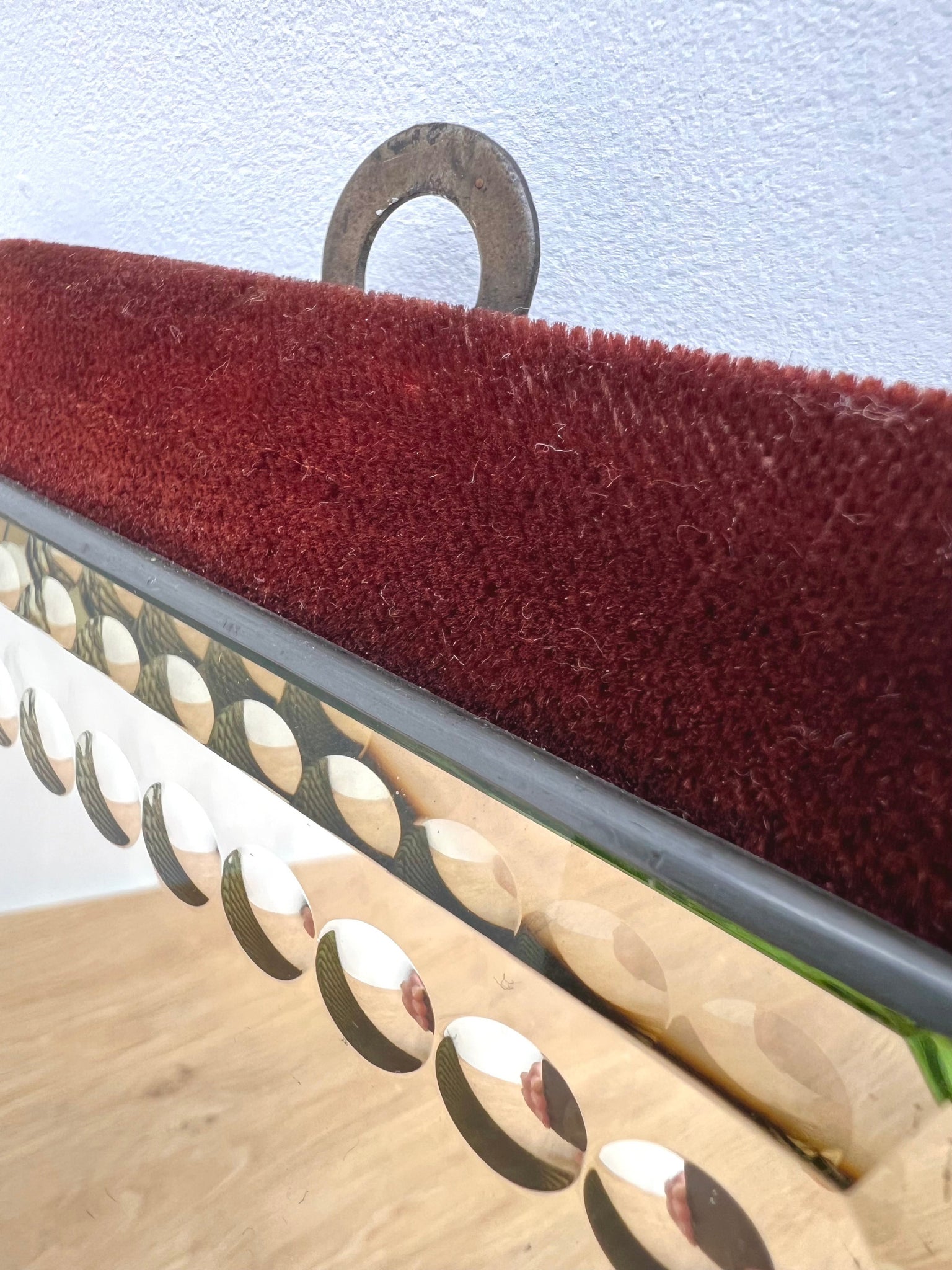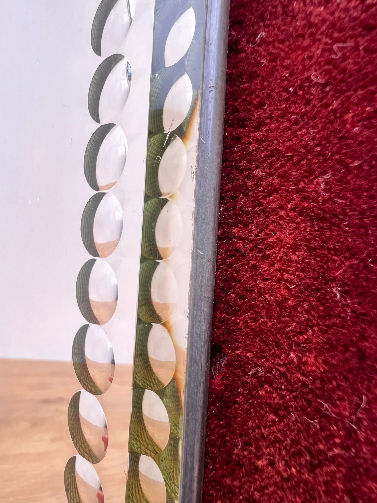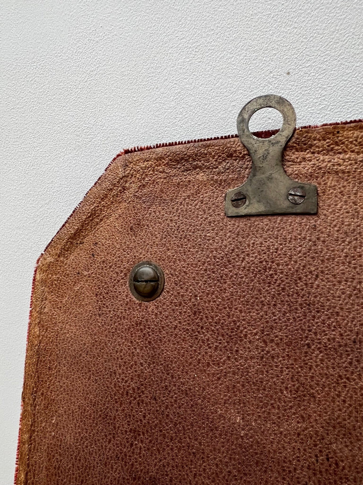 This late 19th century octagonal sorcerer's mirror is in great original condition, mounted against a deep red velvet pillow with wall-hanging fitting on the back.