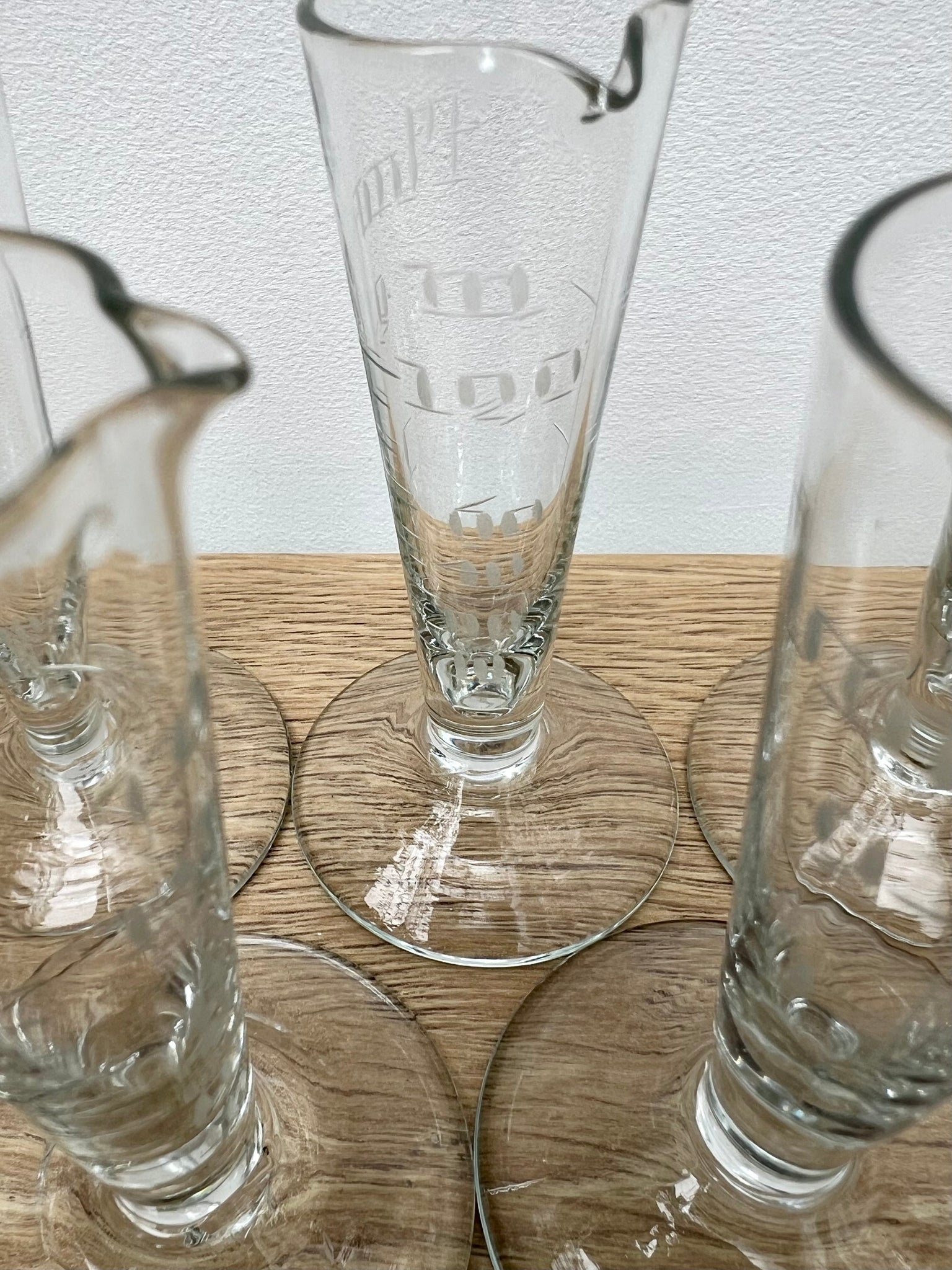 'New old stock' hand-blown and hand etched Victorian fl.oz measures showing their pontil marks. Price is per piece and P&P is included in the price!